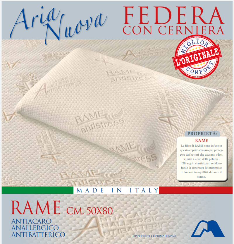Le fibre di rame infuse nel tessuto della federa del cuscino proteggono da batteri, cimici e acari.