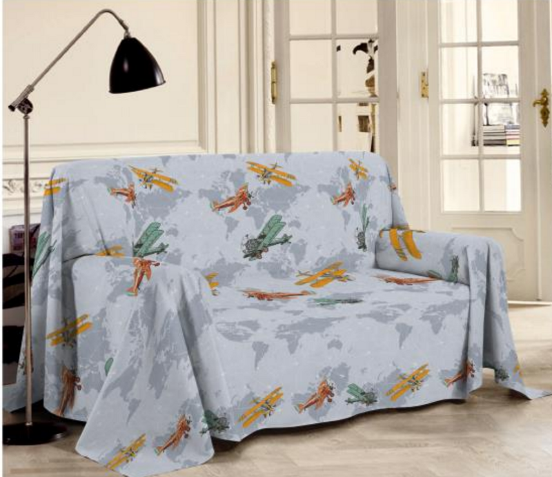 Salotto, Salvadivano, Poltrona, Divano, Sala, copridivano, blu, blue, marrone, tovaglia, aerei, telo arredo, copriletto, copripoltrona, copritutto, salvapoltrona, disegno
