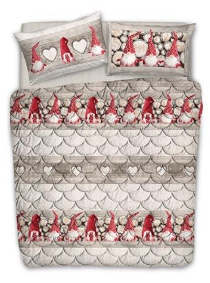 Trapunta copriletto invernale in cotone, Gnomi (blu, beige, rosso ) - beige / Matrimoniale 20254-251060-1180410